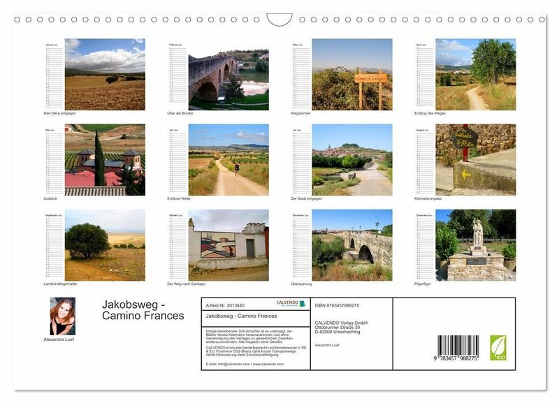 QUALITÄT - Hochwertiger Fotokalender mit 12 wunderschönen Motiven auf lichtbeständigem Bilderdruckpapier, robuste Spiralbindung mit Aufhängebügel.NACHHALTIG - deutliche Abfallreduzierung durch bedarfsgerechte Einzelstückfertigung, umweltfreundliches FSC-zertifiziertes Papier, Produktion in Deutschland, klimabewusste Logistik.PERFEKTES GESCHENK - Kalender für Freunde und Familie, für Kinder und Erwachsene, jung und alt, zu Weihnachten, Geburtstag oder zwischendurch.VIELFALT - Bildkalender in verschiedenen Formaten, z.B. DIN A5, DIN A4, DIN A3 sowie DIN A2. Ob Naturmotiv, Gemälde oder Fotos, ideal für ein persönliches Wohlfühlambiente.Unterwegs am Jakobsweg von St. Jean-Pied-de-Port nach Santiago de Compostela von Autor(in): Alexandra Luef