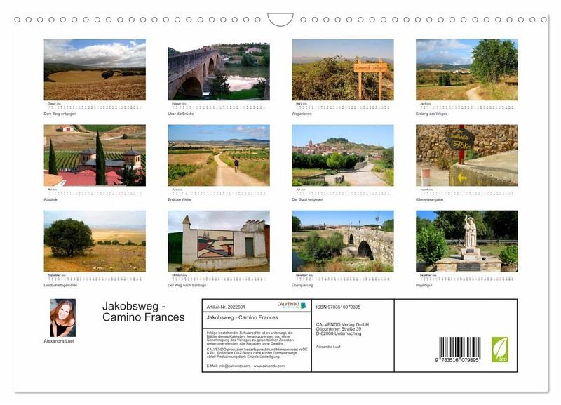 QUALITÄT - Hochwertiger Fotokalender mit 12 wunderschönen Motiven auf lichtbeständigem Bilderdruckpapier, robuste Spiralbindung mit Aufhängebügel.NACHHALTIG - deutliche Abfallreduzierung durch bedarfsgerechte Einzelstückfertigung, umweltfreundliches FSC-zertifiziertes Papier, Produktion in Deutschland, klimabewusste Logistik.PERFEKTES GESCHENK - Kalender für Freunde und Familie, für Kinder und Erwachsene, jung und alt, zu Weihnachten, Geburtstag oder zwischendurch.VIELFALT - Bildkalender in verschiedenen Formaten, z.B. DIN A5, DIN A4, DIN A3 sowie DIN A2. Ob Naturmotiv, Gemälde oder Fotos, ideal für ein persönliches Wohlfühlambiente.Unterwegs am Jakobsweg von St. Jean-Pied-de-Port nach Santiago de Compostela von Autor(in): Alexandra Luef