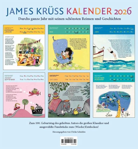 Henriette Bimmelbahn, Timm Thaler oder Mein Urgroßvater und ich - James Krüss' Geschichten und Reime haben viele Generationen von jungen Menschen begleitet und begeistern bis heute mit ihrer Fantasie, ihrem Humor und ihrem Einfühlungsvermögen. Der James Krüss Kalender 2026 versammelt im Jubiläumsjahr die großen Klassiker des geliebten Autors sowie sorgfältig ausgewählte Fundstücke zum Entdecken.