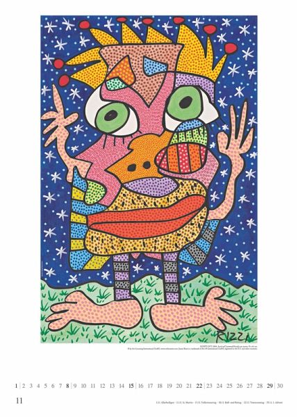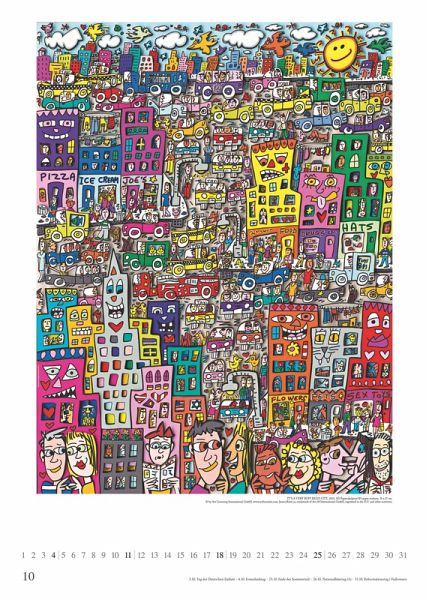 - Pop Art von James Rizzi- Hochwertig gedruckt und verarbeitet- Format 50 x 70 cm- Internationales Kalendarium- Mit allen wichtigen deutschen Feiertagen- Stabile Spiralbindung mit einem Aufhänger- Lackiertes Deckblatt