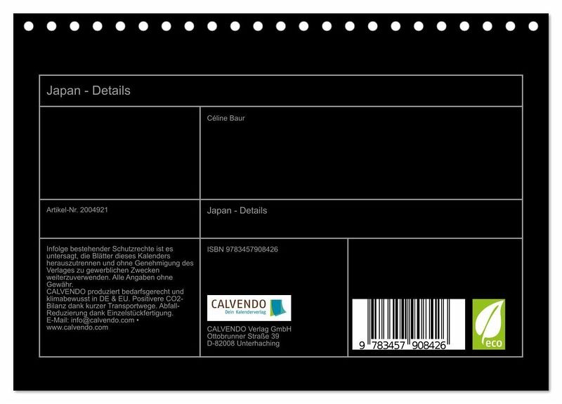 Japans fasziniert durch seine Tempel, Schreine, Rituale und Traditionen! Vieles, was den Zauber Japans ausmacht, liegt in den Details. Dieser Kalender nimmt Sie mit auf eine Reise durch das Japan, das man erst auf den zweiten Blick entdeckt.