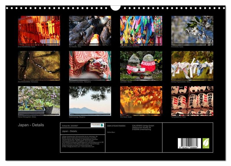 Japans fasziniert durch seine Tempel, Schreine, Rituale und Traditionen! Vieles, was den Zauber Japans ausmacht, liegt in den Details. Dieser Kalender nimmt Sie mit auf eine Reise durch das Japan, das man erst auf den zweiten Blick entdeckt.