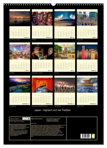 "Der Gegensatz zwischen dynamischen, hochmodernen Großstädten und der uralten Tradition und Kultur macht den Reiz aus, den Japan auf die meisten Menschen ausübt. Dabei hat Nippon, das Land der aufgehenden Sonne, noch viel mehr zu bieten. Japan ist Asiens dynamischste Industrienation mit dem höchsten Stand an Technik und Wissen. Gleichzeitig hat das Land noch reichlich von seinen einzigartigen Traditionen und seiner jahrhundertealten Kultur bewahrt", ist auf der offiziellen Website der Japanischen Fremdenverkehrszentrale zu lesen. Der Fotokünstler Peter Roder hat für diesen Kalender zwölf beeindruckende Aufnahmen zusammengestellt und gestaltet, eine Freude für die Freunde dieses Landes und ein schöner Begleiter für das ganze Jahr.