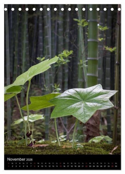 Dieser Kalender zeigt einige kleine Einblicke in die schönen Details der japanischen Natur und Kultur. Wandeln Sie mit durch die japanischen Wälder, die abendlich erleuchteten Straßen oder erhaschen Sie einen Blick auf den Sonnenuntergang über Kyoto.