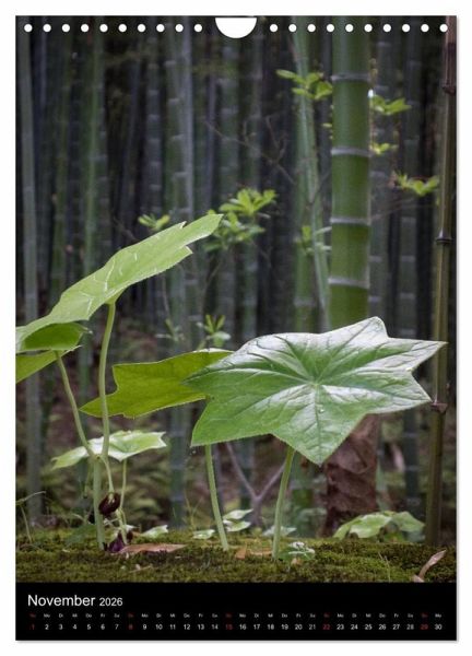 Dieser Kalender zeigt einige kleine Einblicke in die schönen Details der japanischen Natur und Kultur. Wandeln Sie mit durch die japanischen Wälder, die abendlich erleuchteten Straßen oder erhaschen Sie einen Blick auf den Sonnenuntergang über Kyoto.