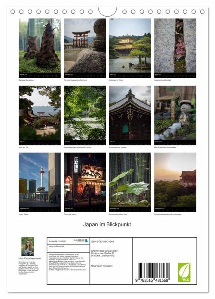 QUALITÄT - Hochwertiger Fotokalender mit 12 wunderschönen Motiven auf lichtbeständigem Bilderdruckpapier, robuste Spiralbindung mit Aufhängebügel.NACHHALTIG - deutliche Abfallreduzierung durch bedarfsgerechte Einzelstückfertigung, umweltfreundliches FSC-zertifiziertes Papier, Produktion in Deutschland, klimabewusste Logistik.PERFEKTES GESCHENK - Kalender für Freunde und Familie, für Kinder und Erwachsene, jung und alt, zu Weihnachten, Geburtstag oder zwischendurch.VIELFALT - Bildkalender in verschiedenen Formaten, z.B. DIN A5, DIN A4, DIN A3 sowie DIN A2. Ob Naturmotiv, Gemälde oder Fotos, ideal für ein persönliches Wohlfühlambiente.Eine visuelle Reise durch Japan von Autor(in): Nina Konrad