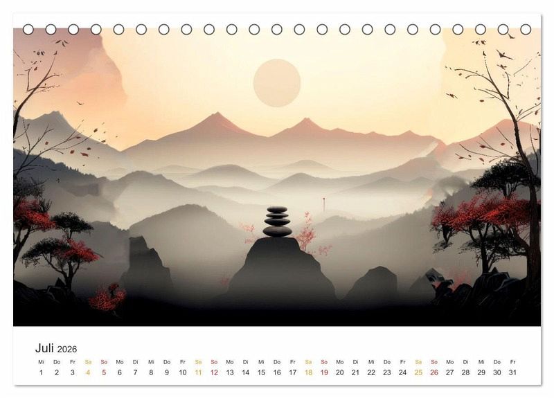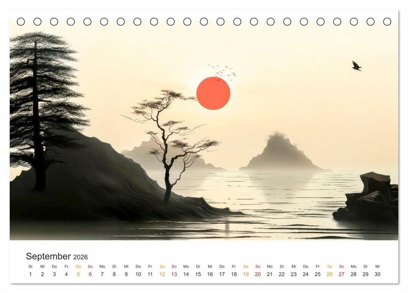 Lassen Sie sich überraschen von diesen wahrhaft bezaubernden KI-Bildern, die die traditionelle japanische Kunst mit minimalistischen Pinselstrichen präsentieren. Jeder Monat zeigt ein atemberaubendes Kunstwerk, das die Essenz der Natur in ihrer reinsten Form einfängt - von nebligen Bergen bis hin zu zarten Bäumen und anmutigen Frauen. Diese Bildmotive spiegeln das empfindliche Gleichgewicht zwischen Einfachheit und Komplexität wider, das für die japanische Ästhetik so wichtig ist. Dieser Kalender ist perfekt für alle Kunst-, Kultur- und Naturliebhaber und bringt ein Gefühl von Frieden und zeitloser Schönheit in Ihr Zuhause oder Büro.