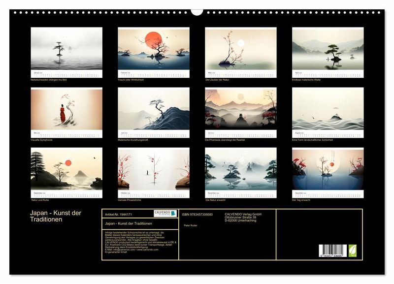 Lassen Sie sich überraschen von diesen wahrhaft bezaubernden KI-Bildern, die die traditionelle japanische Kunst mit minimalistischen Pinselstrichen präsentieren. Jeder Monat zeigt ein atemberaubendes Kunstwerk, das die Essenz der Natur in ihrer reinsten Form einfängt - von nebligen Bergen bis hin zu zarten Bäumen und anmutigen Frauen. Diese Bildmotive spiegeln das empfindliche Gleichgewicht zwischen Einfachheit und Komplexität wider, das für die japanische Ästhetik so wichtig ist. Dieser Kalender ist perfekt für alle Kunst-, Kultur- und Naturliebhaber und bringt ein Gefühl von Frieden und zeitloser Schönheit in Ihr Zuhause oder Büro.
