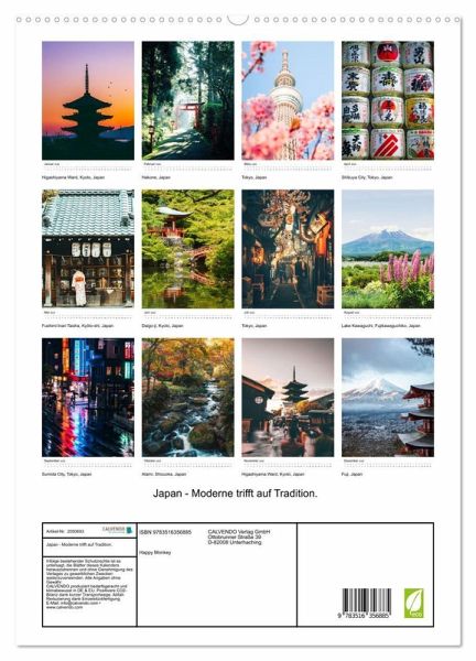 PREMIUM-LINIE - Brillanter Fotokalender mit 12 wunderschönen Motiven, Kunstdruck in Hochglanz in Museumsqualität.QUALITÄT - edle Materialien, stabile Rückwand mit 2 innovativen Einstecktaschen für eine optimale Präsentation an der Wand.NACHHALTIG - deutliche Abfallreduzierung durch bedarfsgerechte Einzelstückfertigung, umweltfreundliches FSC-zertifiziertes Papier, Produktion in Deutschland, klimabewusste Logistik.PERFEKTES GESCHENK - Kalender für Freunde und Familie, für Kinder und Erwachsene, jung und alt, zu Weihnachten, Geburtstag oder zwischendurch.Im "Land der aufgehenden Sonne" trifft die Moderne auf die Tradition. von Autor(in): Happy Monkey