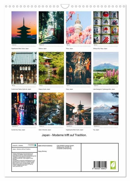 QUALITÄT - Hochwertiger Fotokalender mit 12 wunderschönen Motiven auf lichtbeständigem Bilderdruckpapier, robuste Spiralbindung mit Aufhängebügel.NACHHALTIG - deutliche Abfallreduzierung durch bedarfsgerechte Einzelstückfertigung, umweltfreundliches FSC-zertifiziertes Papier, Produktion in Deutschland, klimabewusste Logistik.PERFEKTES GESCHENK - Kalender für Freunde und Familie, für Kinder und Erwachsene, jung und alt, zu Weihnachten, Geburtstag oder zwischendurch.VIELFALT - Bildkalender in verschiedenen Formaten, z.B. DIN A5, DIN A4, DIN A3 sowie DIN A2. Ob Naturmotiv, Gemälde oder Fotos, ideal für ein persönliches Wohlfühlambiente.Im "Land der aufgehenden Sonne" trifft die Moderne auf die Tradition. von Autor(in): Happy Monkey