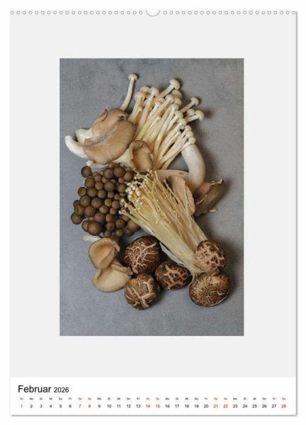 Februar: Typische Pilze, die in der Küche verwendet werden: Shiitake, Eringi, Enoki und Shimeji.