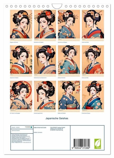 QUALITÄT - Hochwertiger Fotokalender mit 12 wunderschönen Motiven auf lichtbeständigem Bilderdruckpapier, robuste Spiralbindung mit Aufhängebügel.NACHHALTIG - deutliche Abfallreduzierung durch bedarfsgerechte Einzelstückfertigung, umweltfreundliches FSC-zertifiziertes Papier, Produktion in Deutschland, klimabewusste Logistik.PERFEKTES GESCHENK - Kalender für Freunde und Familie, für Kinder und Erwachsene, jung und alt, zu Weihnachten, Geburtstag oder zwischendurch.VIELFALT - Bildkalender in verschiedenen Formaten, z.B. DIN A5, DIN A4, DIN A3 sowie DIN A2. Ob Naturmotiv, Gemälde oder Fotos, ideal für ein persönliches Wohlfühlambiente.Kulturelle Tradition: Das Portrait einer Geisha von Autor(in): Steffani Lehmann