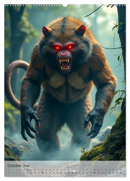 Ein kunstvoll illustrierter KI-Kalender, der jeden Monat eine Gottheit oder ein Monster aus der japanischen Mythologie in atemberaubender Detailtreue zeigt.