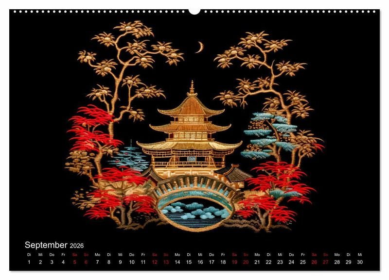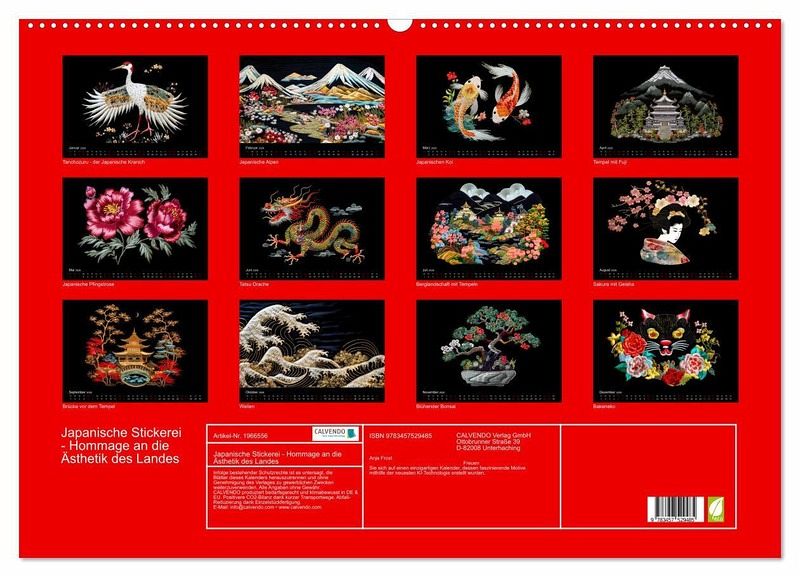 Lassen Sie sich von diesem wunderschönen Stickerei-Kalender mit Japan-Motiven verzaubern, der auf beeindruckende Weise die japanische Kultur und Traditionen einfängt - dank der Hilfe unserer KI. Jeder Monat zeigt ein atemberaubendes Motiv, angefangen bei den fabelhaften Kirschblüten bis hin zu den prächtigen Tempeln und Fabelwesen. Dieser Kalender ist ein Meisterwerk japanischer Kunst und ein stilvoller Start ins neue Jahr, der jeden Raum aufwertet.