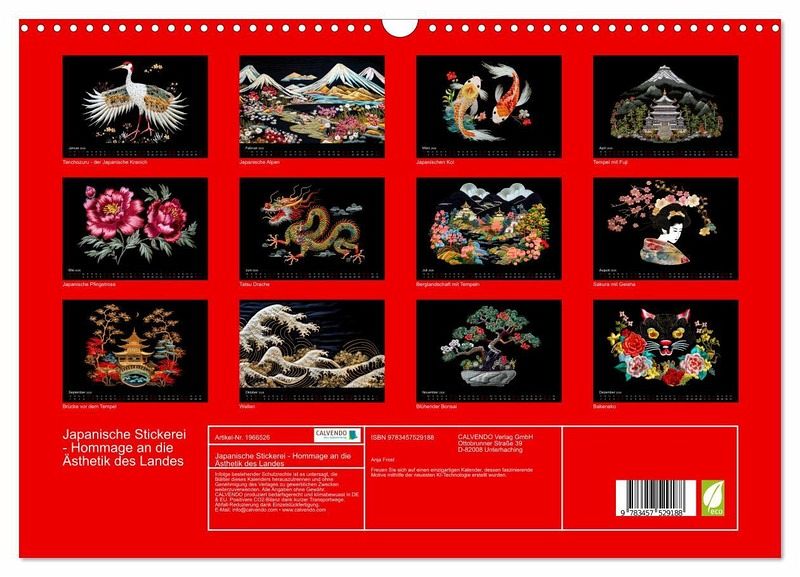 Lassen Sie sich von diesem wunderschönen Stickerei-Kalender mit Japan-Motiven verzaubern, der auf beeindruckende Weise die japanische Kultur und Traditionen einfängt - dank der Hilfe unserer KI. Jeder Monat zeigt ein atemberaubendes Motiv, angefangen bei den fabelhaften Kirschblüten bis hin zu den prächtigen Tempeln und Fabelwesen. Dieser Kalender ist ein Meisterwerk japanischer Kunst und ein stilvoller Start ins neue Jahr, der jeden Raum aufwertet.