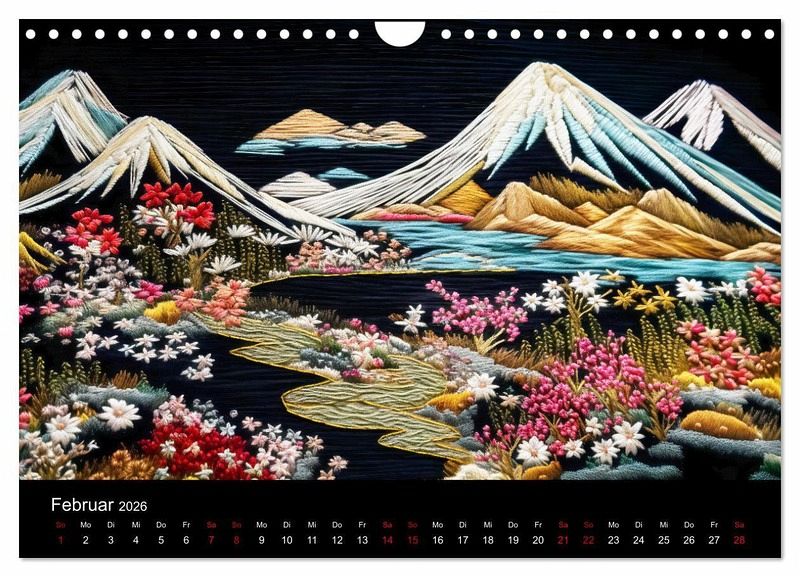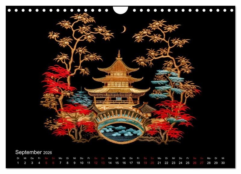 Lassen Sie sich von diesem wunderschönen Stickerei-Kalender mit Japan-Motiven verzaubern, der auf beeindruckende Weise die japanische Kultur und Traditionen einfängt - dank der Hilfe unserer KI. Jeder Monat zeigt ein atemberaubendes Motiv, angefangen bei den fabelhaften Kirschblüten bis hin zu den prächtigen Tempeln und Fabelwesen. Dieser Kalender ist ein Meisterwerk japanischer Kunst und ein stilvoller Start ins neue Jahr, der jeden Raum aufwertet.