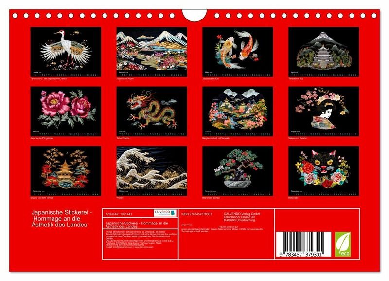 QUALITÄT - Hochwertiger Fotokalender mit 12 wunderschönen Motiven auf lichtbeständigem Bilderdruckpapier, robuste Spiralbindung mit Aufhängebügel.NACHHALTIG - deutliche Abfallreduzierung durch bedarfsgerechte Einzelstückfertigung, umweltfreundliches FSC-zertifiziertes Papier, Produktion in Deutschland, klimabewusste Logistik.PERFEKTES GESCHENK - Kalender für Freunde und Familie, für Kinder und Erwachsene, jung und alt, zu Weihnachten, Geburtstag oder zwischendurch.VIELFALT - Bildkalender in verschiedenen Formaten, z.B. DIN A5, DIN A4, DIN A3 sowie DIN A2. Ob Naturmotiv, Gemälde oder Fotos, ideal für ein persönliches Wohlfühlambiente.Jedes Monat ein neues japanisches Stickerei-Motiv zum Genießen von Autor(in): Anja Frost