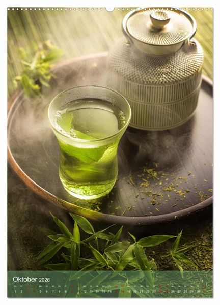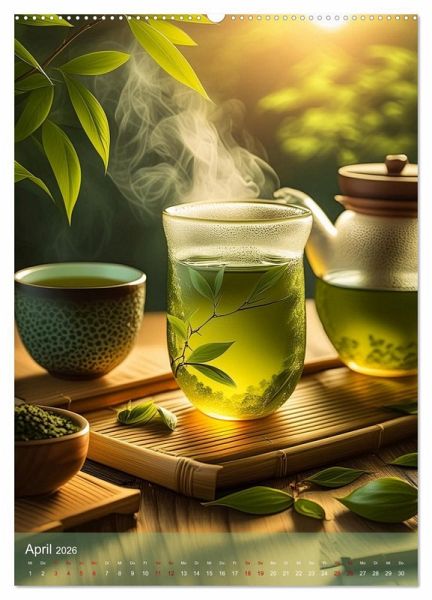 Ein stilvoller Kalender, der die Eleganz und Gesundheit von japanischem grünem Tee in den Fokus rückt.