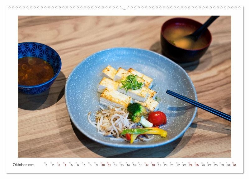 Die traditionelle japanische Küche - Washoku genannt - wurde von der UNESCO als immaterielles Kulturerbe anerkannt. Japan zeichnet sich durch eine außergewöhnlich hohe Lebenserwartung aus, was nicht zuletzt auf die gesunde Ernährung zurückzuführen ist. Die japanische Ernährungskultur ist eng mit der Natur verbunden und orientiert sich stark am Wandel der Jahreszeiten. Unser Kalender "Japans gesunde Küche" entführt Sie in die faszinierenden kulinarischen Künste des Landes der aufgehenden Sonne. Lassen Sie sich von der Ästhetik und Verführungskraft der Gerichte inspirieren und tauchen Sie ein in die reiche Esskultur Japans.