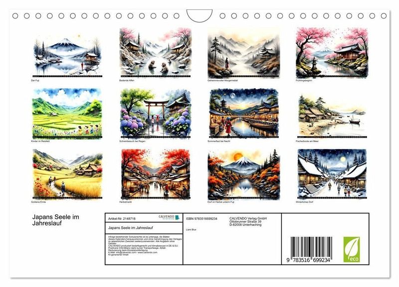 Entdecke Japan neu - mit diesem außergewöhnlichen Kalender im Aquarellstil! Zwölf KI-generierte Kunstwerke entführen dich in magische Landschaften, prachtvolle Schreine, legendäre Feste und stille Dörfer aus vergangenen Zeiten. Inspiriert von echter japanischer Tradition werden Natur, Kultur und die Stimmungen der Jahreszeiten liebevoll vereint. Die detailreiche, historische Bildsprache und die fernöstliche Ästhetik machen diesen Kalender zu einem einzigartigen Hingucker für Japan-Liebhaber, Träumer und Kunstfreunde!