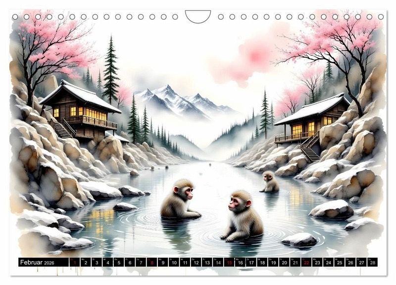 Februar: Badende Affen