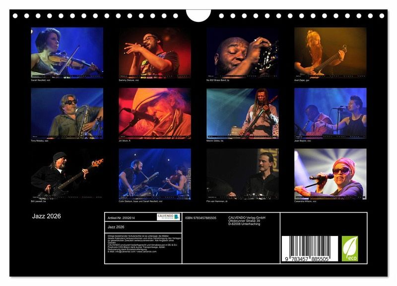 QUALITÄT - Hochwertiger Fotokalender mit 12 wunderschönen Motiven auf lichtbeständigem Bilderdruckpapier, robuste Spiralbindung mit Aufhängebügel.NACHHALTIG - deutliche Abfallreduzierung durch bedarfsgerechte Einzelstückfertigung, umweltfreundliches FSC-zertifiziertes Papier, Produktion in Deutschland, klimabewusste Logistik.PERFEKTES GESCHENK - Kalender für Freunde und Familie, für Kinder und Erwachsene, jung und alt, zu Weihnachten, Geburtstag oder zwischendurch.VIELFALT - Bildkalender in verschiedenen Formaten, z.B. DIN A5, DIN A4, DIN A3 sowie DIN A2. Ob Naturmotiv, Gemälde oder Fotos, ideal für ein persönliches Wohlfühlambiente.Portraits von Jazzmusikern - fotografiert von Gerhard Klein von Autor(in): Daniela Malz