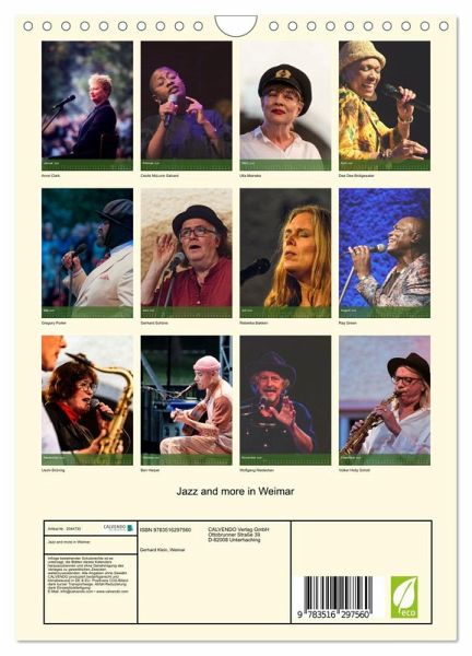 QUALITÄT - Hochwertiger Fotokalender mit 12 wunderschönen Motiven auf lichtbeständigem Bilderdruckpapier, robuste Spiralbindung mit Aufhängebügel.NACHHALTIG - deutliche Abfallreduzierung durch bedarfsgerechte Einzelstückfertigung, umweltfreundliches FSC-zertifiziertes Papier, Produktion in Deutschland, klimabewusste Logistik.PERFEKTES GESCHENK - Kalender für Freunde und Familie, für Kinder und Erwachsene, jung und alt, zu Weihnachten, Geburtstag oder zwischendurch.VIELFALT - Bildkalender in verschiedenen Formaten, z.B. DIN A5, DIN A4, DIN A3 sowie DIN A2. Ob Naturmotiv, Gemälde oder Fotos, ideal für einpersönliches Wohlfühlambiente.Jazz in Weimar von Autor(in): Daniela Malz