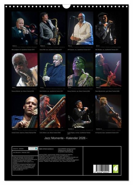 QUALITÄT - Hochwertiger Fotokalender mit 12 wunderschönen Motiven auf lichtbeständigem Bilderdruckpapier, robuste Spiralbindung mit Aufhängebügel.NACHHALTIG - deutliche Abfallreduzierung durch bedarfsgerechte Einzelstückfertigung, umweltfreundliches FSC-zertifiziertes Papier, Produktion in Deutschland, klimabewusste Logistik.PERFEKTES GESCHENK - Kalender für Freunde und Familie, für Kinder und Erwachsene, jung und alt, zu Weihnachten, Geburtstag oder zwischendurch.VIELFALT - Bildkalender in verschiedenen Formaten, z.B. DIN A5, DIN A4, DIN A3 sowie DIN A2. Ob Naturmotiv, Gemälde oder Fotos, ideal für ein persönliches Wohlfühlambiente.Nationale und internationale Jazzmusiker von Autor(in): Daniela Malz