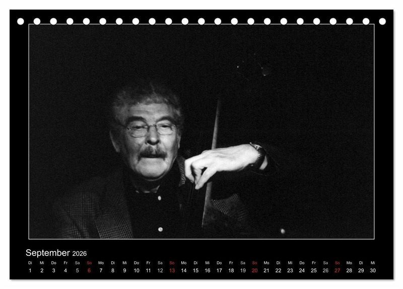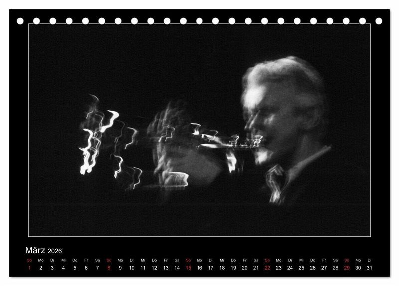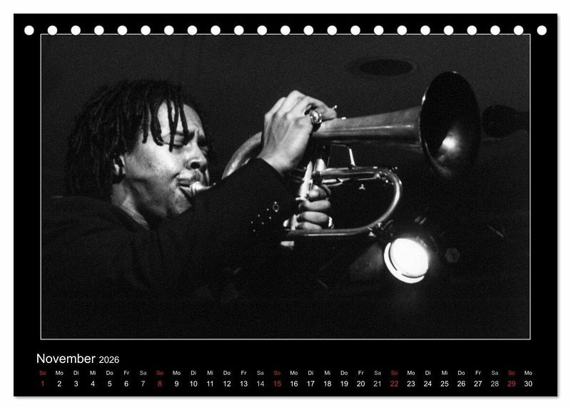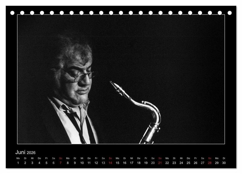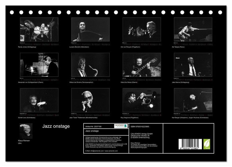 Analoge Fotografien international bekannter Jazz-Musiker während ihrer Auftritte, auf fotografischem Film aufgenommen in klassischem Schwarzweiß spiegeln die Atmosphäre in Jazzclubs wieder: Randy Jones, Luciano Biondini, Ack van Rooyen, Aki Takase, Alexander von Schlippenbach, Wilson de Oliveira, Häns'che Weiss, Jake Hanna, Günter Lenz, Toots Thielemans, Roy Hargrove, Karl Berger und Jürgen Wuchner. Ein Kalender aus der Analog Signature Edition.