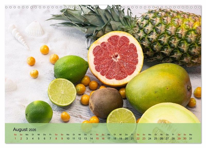 Jeden Monat werden hier leckere Gerichte aber auch Früchte und Gemüse gezeigt, immer abgestimmt auf die jeweilige Jahreszeit. Die Bilder sind als leckere Inspiration, eine perfekte Dekoration für die Küche.