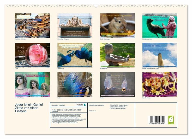 PREMIUM-LINIE - Brillanter Fotokalender mit 12 wunderschönen Motiven, Kunstdruck in Hochglanz in Museumsqualität.QUALITÄT - edle Materialien, stabile Rückwand mit 2 innovativen Einstecktaschen für eine optimale Präsentation an der Wand.NACHHALTIG - deutliche Abfallreduzierung durch bedarfsgerechte Einzelstückfertigung, umweltfreundliches FSC-zertifiziertes Papier, Produktion in Deutschland, klimabewusste Logistik.PERFEKTES GESCHENK - Kalender für Freunde und Familie, für Kinder und Erwachsene, jung und alt, zu Weihnachten, Geburtstag oder zwischendurch.Die weisen Sprüche eines genialen Wissenschaftlers, ergänzt mit passenden Fotografien von Autor(in): Gisela Kruse