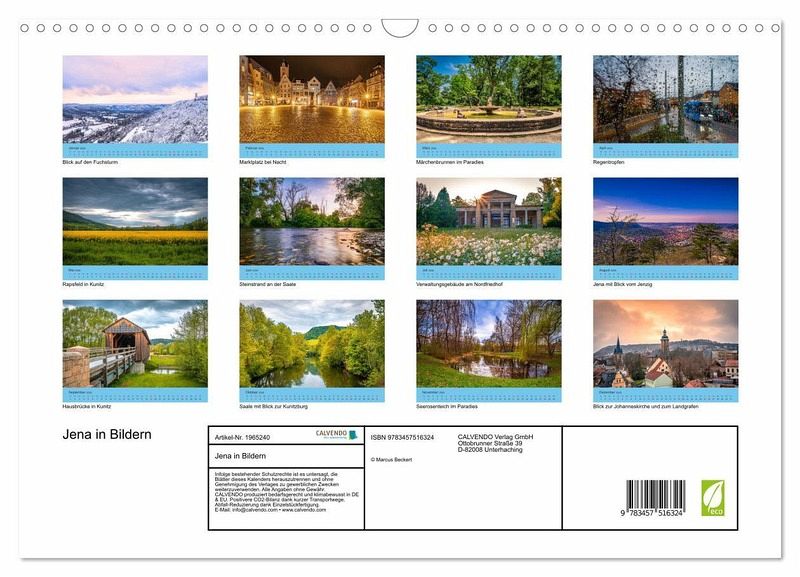 QUALITÄT - Hochwertiger Fotokalender mit 12 wunderschönen Motiven auf lichtbeständigem Bilderdruckpapier, robuste Spiralbindung mit Aufhängebügel.NACHHALTIG - deutliche Abfallreduzierung durch bedarfsgerechte Einzelstückfertigung, umweltfreundliches FSC-zertifiziertes Papier, Produktion in Deutschland, klimabewusste Logistik.PERFEKTES GESCHENK - Kalender für Freunde und Familie, für Kinder und Erwachsene, jung und alt, zu Weihnachten, Geburtstag oder zwischendurch.VIELFALT - Bildkalender in verschiedenen Formaten, z.B. DIN A5, DIN A4, DIN A3 sowie DIN A2. Ob Naturmotiv, Gemälde oder Fotos, ideal für ein persönliches Wohlfühlambiente.Die Lichtstadt Jena in Bildern von Autor(in): Marcus Beckert Fotografie