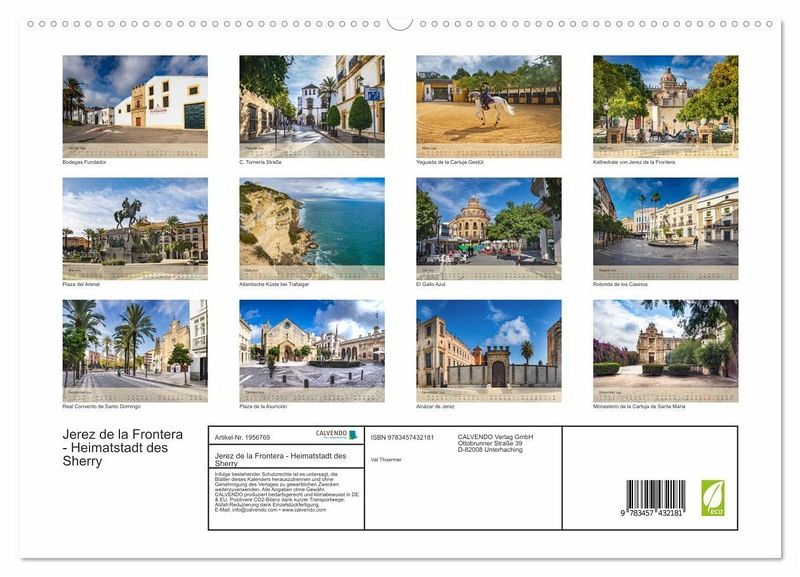 PREMIUM-LINIE - Brillanter Fotokalender mit 12 wunderschönen Motiven, Kunstdruck in Hochglanz in Museumsqualität.QUALITÄT - edle Materialien, stabile Rückwand mit 2 innovativen Einstecktaschen für eine optimale Präsentation an der Wand.NACHHALTIG - deutliche Abfallreduzierung durch bedarfsgerechte Einzelstückfertigung, umweltfreundliches FSC-zertifiziertes Papier, Produktion in Deutschland, klimabewusste Logistik.PERFEKTES GESCHENK - Kalender für Freunde und Familie, für Kinder und Erwachsene, jung und alt, zu Weihnachten, Geburtstag oder zwischendurch.Eine Fotoreise durch die andalusische Stadt Jerez de la Frontera von Autor(in): Val Thoermer