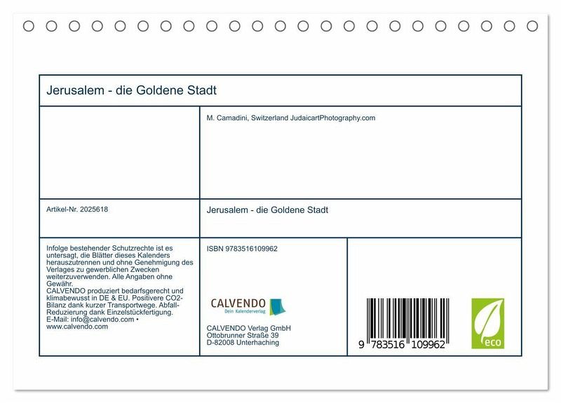 Eine Stadt mit jahrtausendealter Geschichte, das macht Jerusalem einzigartig. Mit diesem Kalender sehen Sie die Goldene Stadt in Israel, wo immer Sie sind.