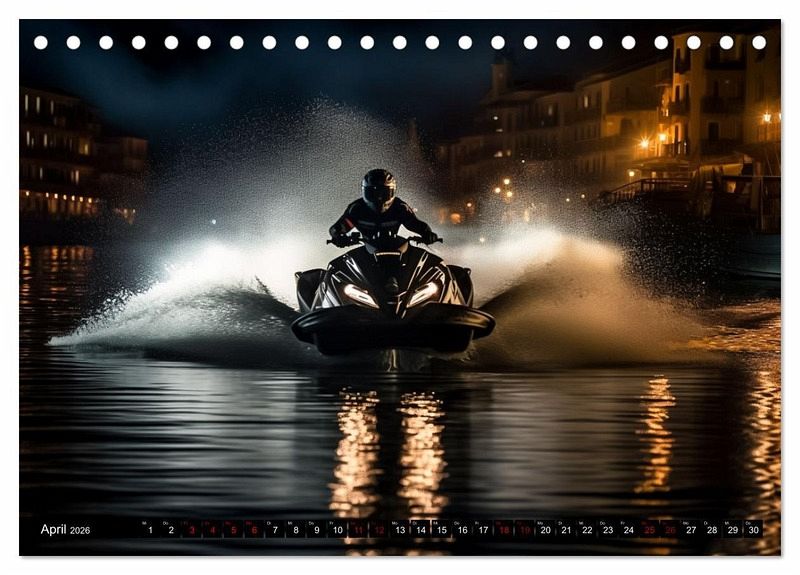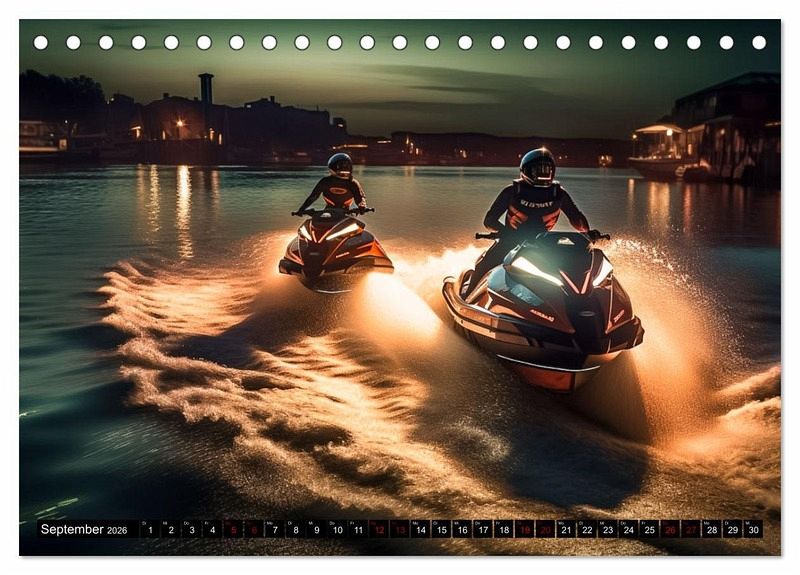 Wer kennt sie nicht, die waghalsigen Frauen und Männer mit Ihren schnellen Jetski, die mit atemberaubender Geschwindigkeit über das glitzernde Wasser rauschen. Die turbulente Bilderwelt dieses Kalenders entführt Sie zu teils waghalsigen Jetski Abenteuern der besonderen Art. Bearbeitet und erstellt wurden diese zwölf wunderbaren Bilder des Fotografen Dirk Meutzner von einer KI und Photoshop.