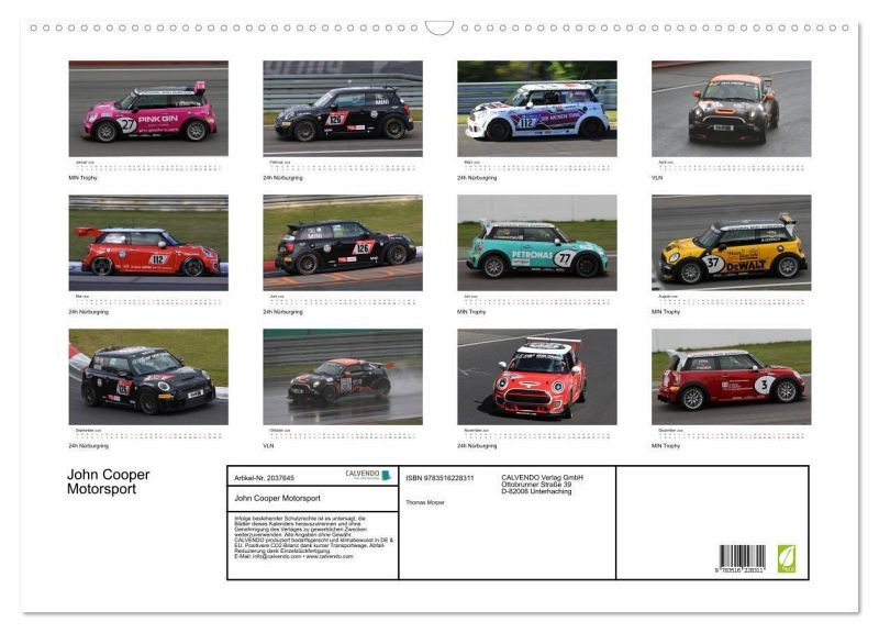 QUALITÄT - Hochwertiger Fotokalender mit 12 wunderschönen Motiven auf lichtbeständigem Bilderdruckpapier, robuste Spiralbindung mit Aufhängebügel.NACHHALTIG - deutliche Abfallreduzierung durch bedarfsgerechte Einzelstückfertigung, umweltfreundliches FSC-zertifiziertes Papier, Produktion in Deutschland, klimabewusste Logistik.PERFEKTES GESCHENK - Kalender für Freunde und Familie, für Kinder und Erwachsene, jung und alt, zu Weihnachten, Geburtstag oder zwischendurch.VIELFALT - Bildkalender in verschiedenen Formaten, z.B. DIN A5, DIN A4, DIN A3 sowie DIN A2. Ob Naturmotiv, Gemälde oder Fotos, ideal für ein persönliches Wohlfühlambiente.MINI Motorsport mit Fotos von MINI Cooper Rennfahrzeugen von Autor(in): Thomas Morper