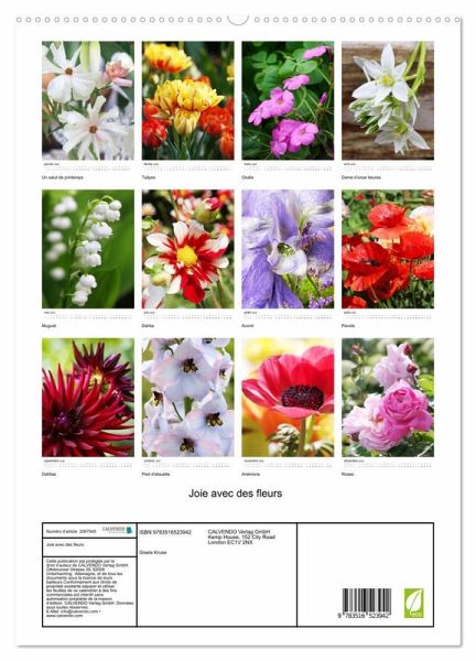 Un calendrier photo avec des fleurs en gros plan est une merveilleuse idée pour faire entrer la beauté de la nature dans le quotidien. Admirez des tulipes, du muguet, des coquelicots, des roses et des dahlias qui vous accompagneront tout au long de l'année.
