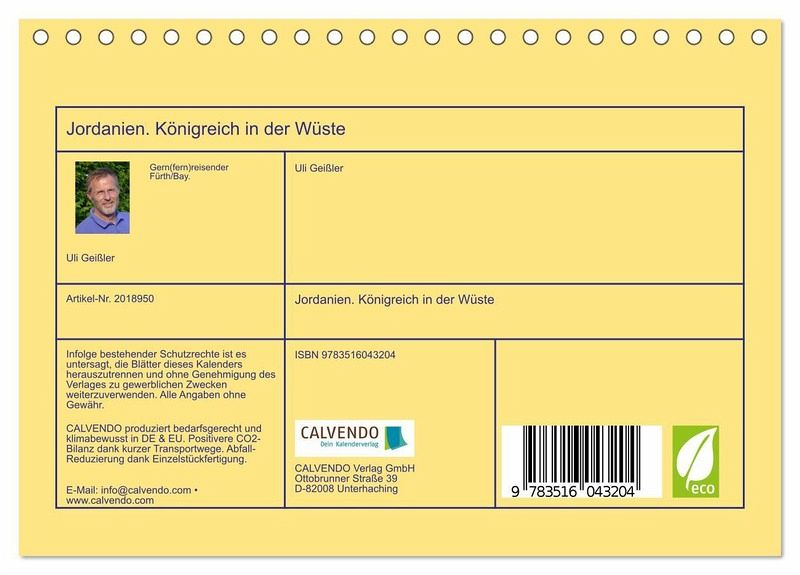 QUALITÄT - Hochwertiger Fotokalender mit 12 wunderschönen Motiven auf lichtbeständigem Bilderdruckpapier, robuste Spiralbindung.NACHHALTIG - deutliche Abfallreduzierung durch bedarfsgerechte Einzelstückfertigung, umweltfreundliches FSC-zertifiziertes Papier, Produktion in Deutschland, klimabewusste Logistik.PERFEKTES GESCHENK - Kalender für Freunde und Familie, für Kinder und Erwachsene, jung und alt, zu Weihnachten, Geburtstag oder zwischendurch.VIELFALT - Bildkalender in verschiedenen Formaten, z.B. DIN A5, DIN A4, DIN A3 sowie DIN A2. Ob Naturmotiv, Gemälde oder Fotos, ideal für ein persönliches Wohlfühlambiente.Das haschemitische Königreich in der Wüste von Autor(in): Pater Noster