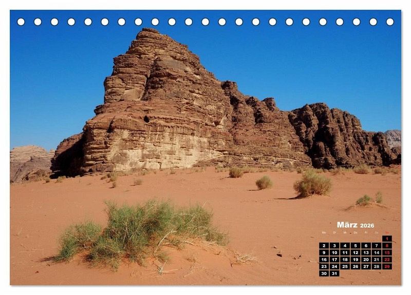 Eindrucksvolle Bilder zeigen Monat für Monat die überraschende landschaftliche und farbige Vielfalt des Wüstenstaates Jordanien, gelegen zwischen Syrien, Irak und dem Golf von Aquaba.