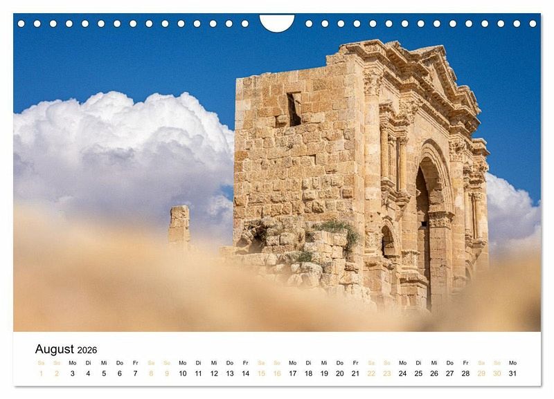 Jeden Monat entführt Sie unser Kalender in eine neue Facette Jordaniens, von den majestätischen Ruinen der antiken Stadt Petra bis zu den modernen Skylines von Amman. Die perfekte Symbiose aus Vergangenheit und Gegenwart wird in atemberaubenden Bildern eingefangen, die Sie jeden