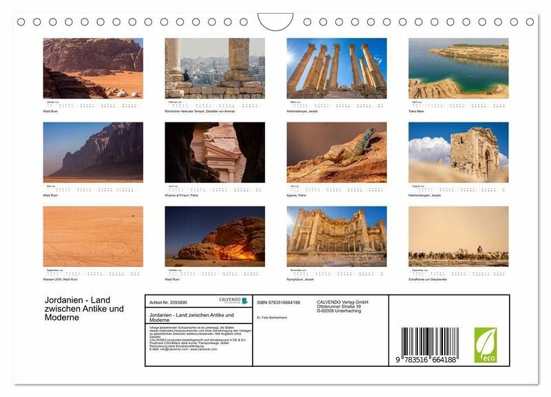 Tauchen Sie ein in die faszinierende Welt Jordaniens mit unserem exquisiten Fotokalender: "Jordanien - Land zwischen Antike und Moderne". Dieser Kalender ist nicht nur ein visuelles Fest für die Sinne, sondern auch eine Reise durch die reiche Geschichte und die atemberaubende Schönheit dieses faszinierenden Landes.