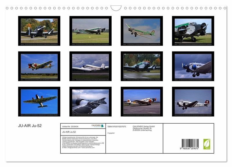 QUALITÄT - Hochwertiger Fotokalender mit 12 wunderschönen Motiven auf lichtbeständigem Bilderdruckpapier, robuste Spiralbindung mit Aufhängebügel.NACHHALTIG - deutliche Abfallreduzierung durch bedarfsgerechte Einzelstückfertigung, umweltfreundliches FSC-zertifiziertes Papier, Produktion in Deutschland, klimabewusste Logistik.PERFEKTES GESCHENK - Kalender für Freunde und Familie, für Kinder und Erwachsene, jung und alt, zu Weihnachten, Geburtstag oder zwischendurch.VIELFALT - Bildkalender in verschiedenen Formaten, z.B. DIN A5, DIN A4, DIN A3 sowie DIN A2. Ob Naturmotiv, Gemälde oder Fotos, ideal für ein persönliches Wohlfühlambiente.Oldtimer-Flugzeug Ju-52 der JU-AIR Schweiz von Autor(in): Artur Gagel