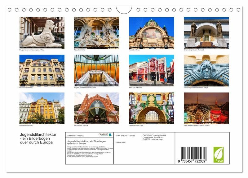 QUALITÄT - Hochwertiger Fotokalender mit 12 wunderschönen Motiven auf lichtbeständigem Bilderdruckpapier, robuste Spiralbindung mit Aufhängebügel.NACHHALTIG - deutliche Abfallreduzierung durch bedarfsgerechte Einzelstückfertigung, umweltfreundliches FSC-zertifiziertes Papier, Produktion in Deutschland, klimabewusste Logistik.PERFEKTES GESCHENK - Kalender für Freunde und Familie, für Kinder und Erwachsene, jung und alt, zu Weihnachten, Geburtstag oder zwischendurch.VIELFALT - Bildkalender in verschiedenen Formaten, z.B. DIN A5, DIN A4, DIN A3 sowie DIN A2. Ob Naturmotiv, Gemälde oder Fotos, ideal für ein persönliches Wohlfühlambiente.Eine Sammlung von Bildbeispielen europäischer Jugendstilarchitektur von Autor(in): Christian Müller