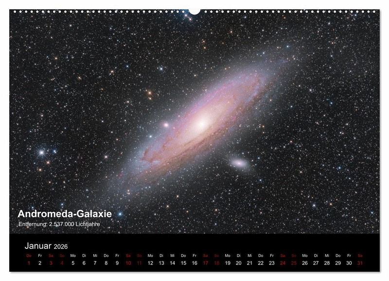 Entdecke die Schönheit des Nachthimmels durch einzigartige Astrofotografien, die mit viel Leidenschaft und Liebe zum Detail aufgenommen wurden. Von funkelnden Sternhaufen über leuchtende Nebel bis hin zu majestätischen Galaxien. Lass dich Monat für Monat von fernen Welten verzaubern. Perfekt für alle, die ein Stück des Universums in ihr Zuhause bringen möchten. Ein Muss für Astronomie-Fans und Hobby-Astronomen!