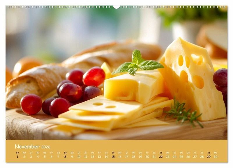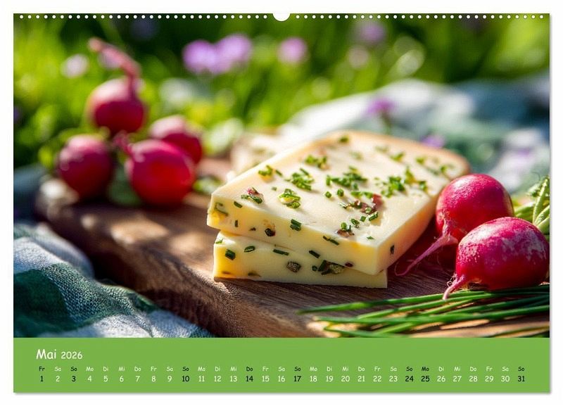 Käse im Kalender und das 12 Monate! Dieser Käsekalender zeigt Käse in seiner ganzen Vielfalt - von cremigem Brie über würzigen Blauschimmel bis hin zu kräftigem Schweizer Käse. Ob edle Käseplatten, feine Käsesorten oder rustikale Käseplatte mit Brot und Wein - hier kommt jeder Käseliebhaber auf seine Kosten. Ideal als Geschenk für Käseliebhaber, als Foodkalender für Genießer oder als stilvoller Küchenkalender. Die stimmungsvollen KI-generierten Käsebilder passen in jede Küche und machen Lust auf Feinkost, Genuss und gesellige Abende. Ob als Familienkalender, Küchenkalender oder einfach als Käse-Geschenk für echte Gourmets - dieser Kalender vereint Ästhetik, Vielfalt und Leidenschaft für Käse. Ein Foodkalender, der Käse nicht nur zeigt, sondern feiert.