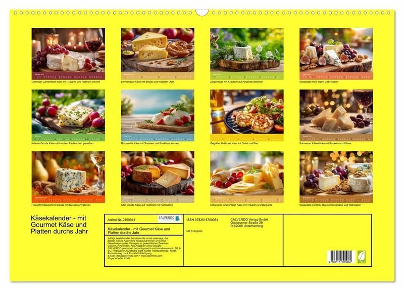 QUALITÄT - Hochwertiger Fotokalender mit 12 wunderschönen Motiven auf lichtbeständigem Bilderdruckpapier, robuste Spiralbindung mit Aufhängebügel.NACHHALTIG - deutliche Abfallreduzierung durch bedarfsgerechte Einzelstückfertigung, umweltfreundliches FSC-zertifiziertes Papier, Produktion in Deutschland, klimabewusste Logistik.PERFEKTES GESCHENK - Kalender für Freunde und Familie, für Kinder und Erwachsene, jung und alt, zu Weihnachten, Geburtstag oder zwischendurch.VIELFALT - Bildkalender in verschiedenen Formaten, z.B. DIN A5, DIN A4, DIN A3 sowie DIN A2. Ob Naturmotiv, Gemälde oder Fotos, ideal für ein persönliches Wohlfühlambiente.Käsekalender mit feinen Käse-Platten und Käsesorten. Von Schweizer Käse bis Feinkost: ein Foodkalender für Käseliebhaber. Perfekt als Geschenk für Genießer und als Küchenkalender voller Genussmomente. von Autor(in): Michael Bihlmayer