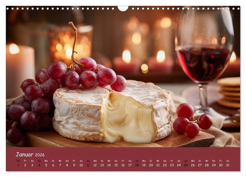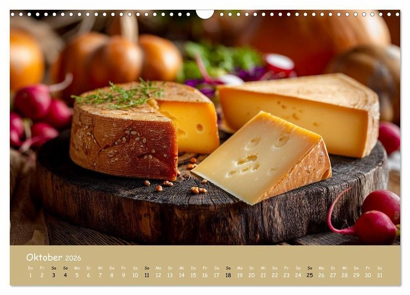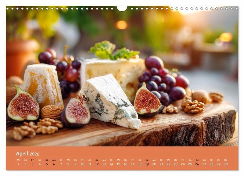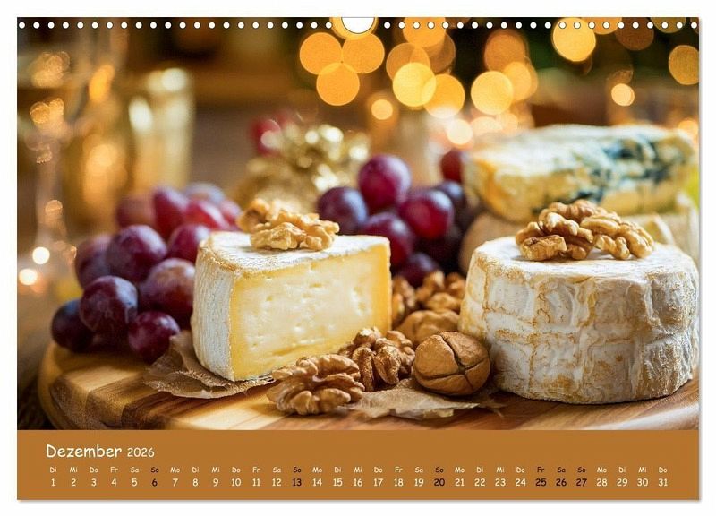 Käse im Kalender und das 12 Monate! Dieser Käsekalender zeigt Käse in seiner ganzen Vielfalt - von cremigem Brie über würzigen Blauschimmel bis hin zu kräftigem Schweizer Käse. Ob edle Käseplatten, feine Käsesorten oder rustikale Käseplatte mit Brot und Wein - hier kommt jeder Käseliebhaber auf seine Kosten. Ideal als Geschenk für Käseliebhaber, als Foodkalender für Genießer oder als stilvoller Küchenkalender. Die stimmungsvollen KI-generierten Käsebilder passen in jede Küche und machen Lust auf Feinkost, Genuss und gesellige Abende. Ob als Familienkalender, Küchenkalender oder einfach als Käse-Geschenk für echte Gourmets - dieser Kalender vereint Ästhetik, Vielfalt und Leidenschaft für Käse. Ein Foodkalender, der Käse nicht nur zeigt, sondern feiert.