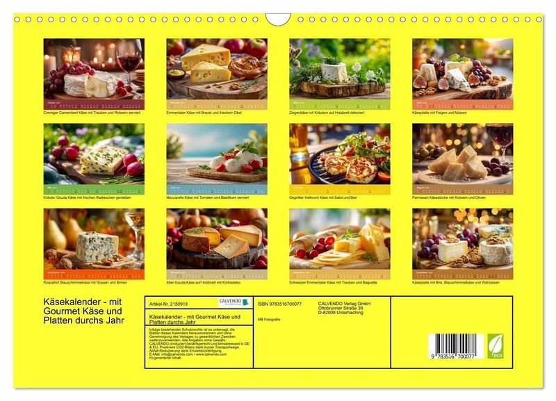 QUALITÄT - Hochwertiger Fotokalender mit 12 wunderschönen Motiven auf lichtbeständigem Bilderdruckpapier, robuste Spiralbindung mit Aufhängebügel.NACHHALTIG - deutliche Abfallreduzierung durch bedarfsgerechte Einzelstückfertigung, umweltfreundliches FSC-zertifiziertes Papier, Produktion in Deutschland, klimabewusste Logistik.PERFEKTES GESCHENK - Kalender für Freunde und Familie, für Kinder und Erwachsene, jung und alt, zu Weihnachten, Geburtstag oder zwischendurch.VIELFALT - Bildkalender in verschiedenen Formaten, z.B. DIN A5, DIN A4, DIN A3 sowie DIN A2. Ob Naturmotiv, Gemälde oder Fotos, ideal für ein persönliches Wohlfühlambiente.Käsekalender mit feinen Käse-Platten und Käsesorten. Von Schweizer Käse bis Feinkost: ein Foodkalender für Käseliebhaber. Perfekt als Geschenk für Genießer und als Küchenkalender voller Genussmomente. von Autor(in): Michael Bihlmayer