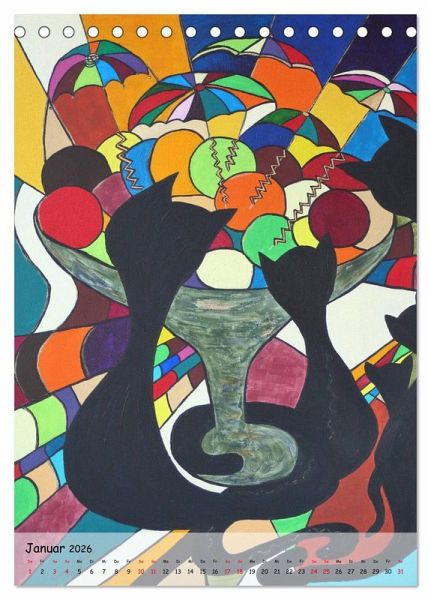 Kätz - Katzen kunstvoll in Szene gesetzt. Der perfekte Begleiter durch das gesamte Jahr für jeden, der Katzen liebt. Die Künstlerin Petra Kolossa entwarf 2007 für den Druck von Bekleidungsstücken schwarz-weiß-Zeichnungen. Sechs Jahre später griff sie diese Motive als Idee erneut auf und hauchte denen ein intensives farbiges Leben ein. Ihre Intension: "Ich möchte den Menschen mit meinen Bildern ein Lächeln ins Gesicht zaubern." Erfreuen Sie sich Monat für Monat an ihren Pop-Art-Kätz. Mit dem dreizehnten Kätz, dem "Gentleman-Kätz", schließt Petra Kolossa 2017 die Werkgruppe "Kätz" (vorläufig) ab.