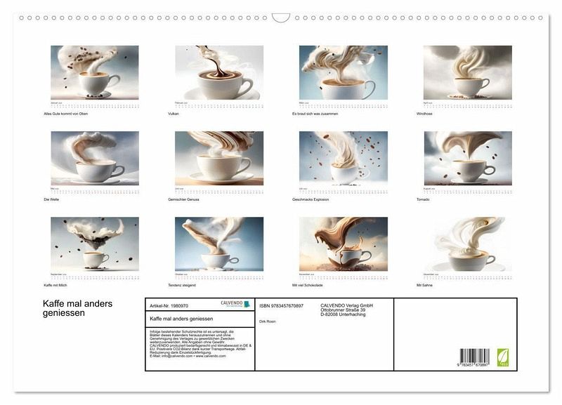 QUALITÄT - Hochwertiger Fotokalender mit 12 wunderschönen Motiven auf lichtbeständigem Bilderdruckpapier, robuste Spiralbindung mit Aufhängebügel.NACHHALTIG - deutliche Abfallreduzierung durch bedarfsgerechte Einzelstückfertigung, umweltfreundliches FSC-zertifiziertes Papier, Produktion in Deutschland, klimabewusste Logistik.PERFEKTES GESCHENK - Kalender für Freunde und Familie, für Kinder und Erwachsene, jung und alt, zu Weihnachten, Geburtstag oder zwischendurch.VIELFALT - Bildkalender in verschiedenen Formaten, z.B. DIN A5, DIN A4, DIN A3 sowie DIN A2. Ob Naturmotiv, Gemälde oder Fotos, ideal für ein persönliches Wohlfühlambiente.Für Kaffeeliebhaber mit dem besonderen Blick von Autor(in): Dirk Rosin